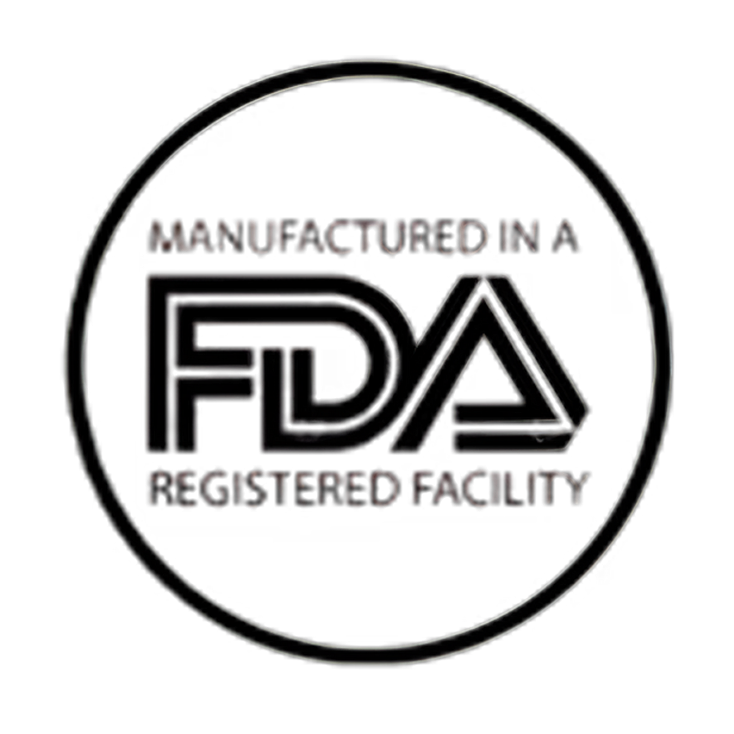 Fabricado en una instalación registrada ante la FDA, cumpliendo con las normas establecidas de seguridad y calidad.